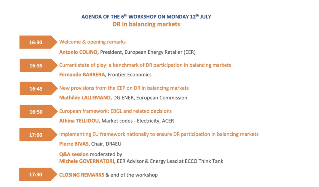 After an initial joint EER and DR4EU event on 6th May 2021 focusing on The Benefits of Demand Response for Electricity Suppliers and Consumers, with the participation of DGENER and CEER, we have been organising a series of workshops to address various aspects of the implementation of the European legislation in the market.