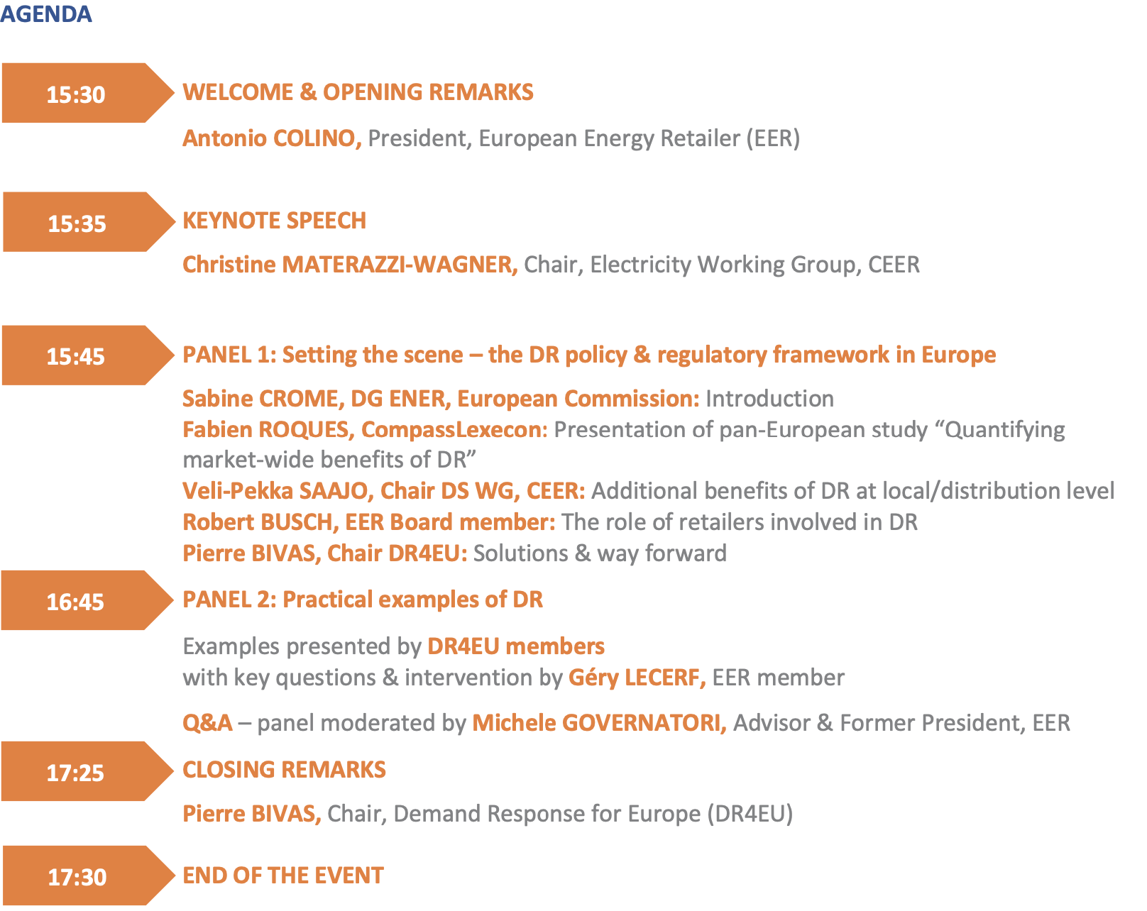 These workshops allowed sharing understanding, doubts, experience and solutions among policy makers and various stakeholders, with the common goal of achieving a smooth and swift implementation at all levels in order to ensure the participation of DR in all markets, with converging approaches and to the benefit of all consumers.